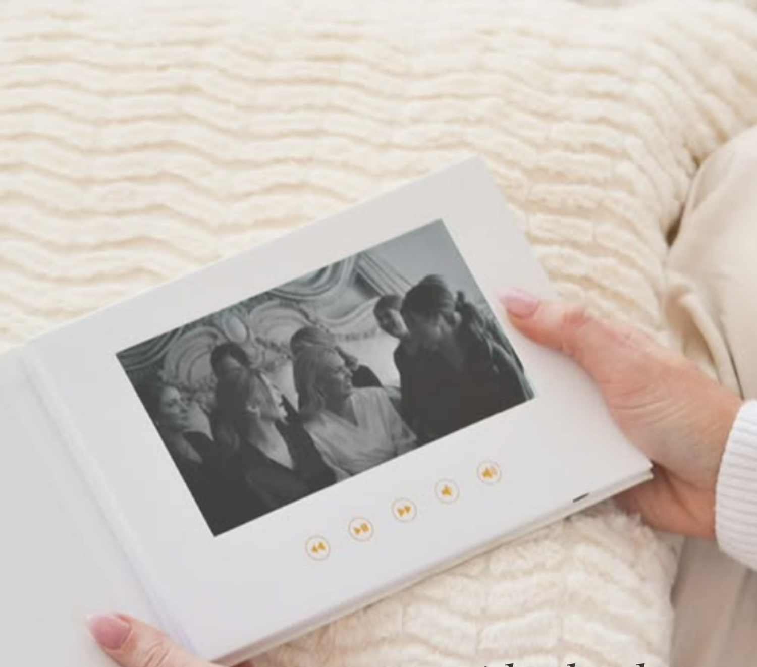 Our vintage-inspired yet innovative video books let you relive your day with a premium screen and built-in audio -just open the cover and your memories come to life to be displayed in your home.